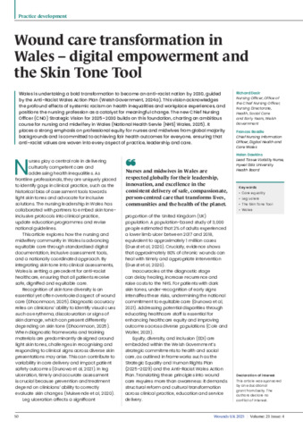 Desir, Richard, Beadle, Frances and Dawkins, Helen (2025) Wound care transformation in Wales – digital empowerment and the Skin Tone Tool. Wounds UK, 21 (5). pp. 50-57. ISSN 17466814